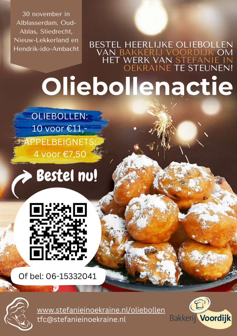 We zijn ook weer hard bezig met de oliebollenactie. Die wordt weer gehouden op 30 november 2024. Hierboven kunt u de flyers vinden per regio. Bestellen kan eenvoudig via het bestelformulier op de website of door het telefoonnummer te bellen wat op de flyer vermeldt staat.