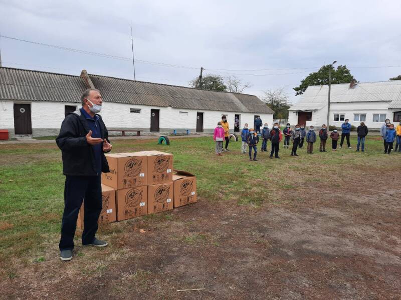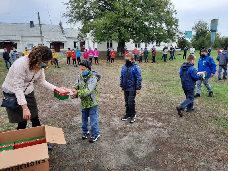 Door de coronamaatregelen konden we al langere tijd het internaat niet bezoeken. Uiteindelijk hebben we naar een oplossing gezocht; in de buitenlucht, mondkapjes op en met gepaste afstand. De dominee hield nog een kort woord en alle kinderen mochten de schoenendozen met vreugde aannemen.
