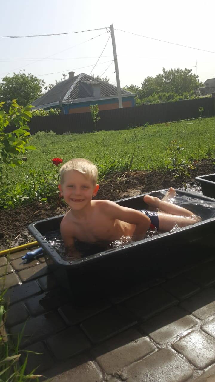 Nu het hier ruim 35°c is zoeken de kinderen van het familiehuis verkoeling in hun eigen teiltje.