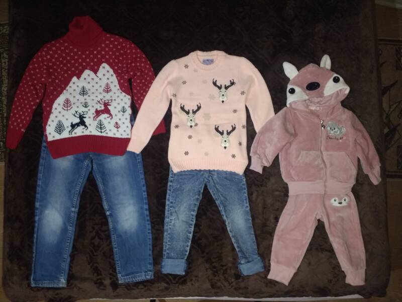 3 paar schoentjes, 3 jasjes, 3 stellen kleding en 3 bedjes staan te wachten.