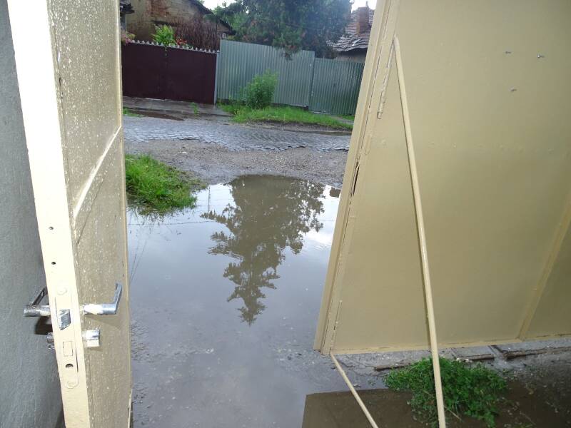 Gisteren was het hier een heerlijke warme dag, wel tegen de 30 graden. In de middag begon het heel hard te regenen en te onweren. Als het hier regent dan lopen alle straten meteen vol. Dat was ook zo met de stoep voor mijn huis. De stoep leek wel veranderd in een sloot. Als ik de straat op zou willen, dan moest ik eerst door een laag water heen.