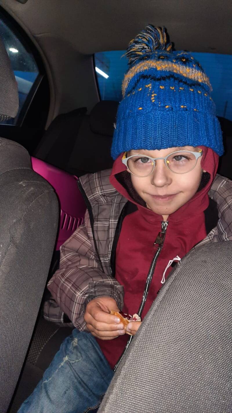 Ze hebben eventjes uitgerust. Rond drie uur kwamen ze het Zakarpatengebied binnen. Dat is allemaal goed gegaan. Omdat het hier veiliger is hebben ze de auto aan de kant gezet en nog eventjes een uurtje geslapen. Ze hebben nu nog ongeveer drie uur voor de boeg. Het is wel moeilijker rijden omdat er sneeuw ligt en ze echt door de bergen rijden.
