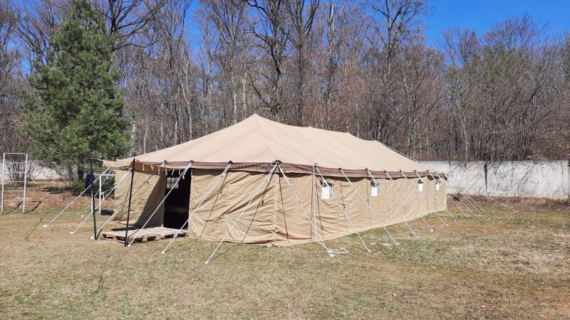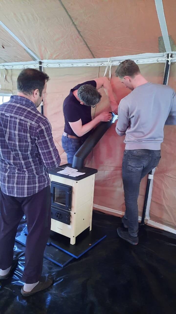 Vanmorgen bleven nog 8 mannen om de legertent op te zetten. In Lavki, een plaatsje verderop, worden veel vluchtelingen opgenomen. Wel 170 mensen in één gebouw. Men wil vanaf nu de vluchtelingen in deze tenten op gaan vangen. De mannen uit Nederland hebben echt super hard gewerkt. In korte tijd stond de legertent overeind. De veldbedden en de gesponsorde kachel zijn ook geplaatst. Echt een topteam👍🏼